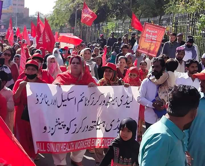 Lady Health Workers are essential to Pakistan’s response under Covid-19, as the largest cadre of community-based healthcare providers in the country. LHWs have been mobilizing since 2010 against insecure working conditions, characterized by irregular and inadequate salaries, and part-time status as government employees. The pandemic has only worsened their situation.